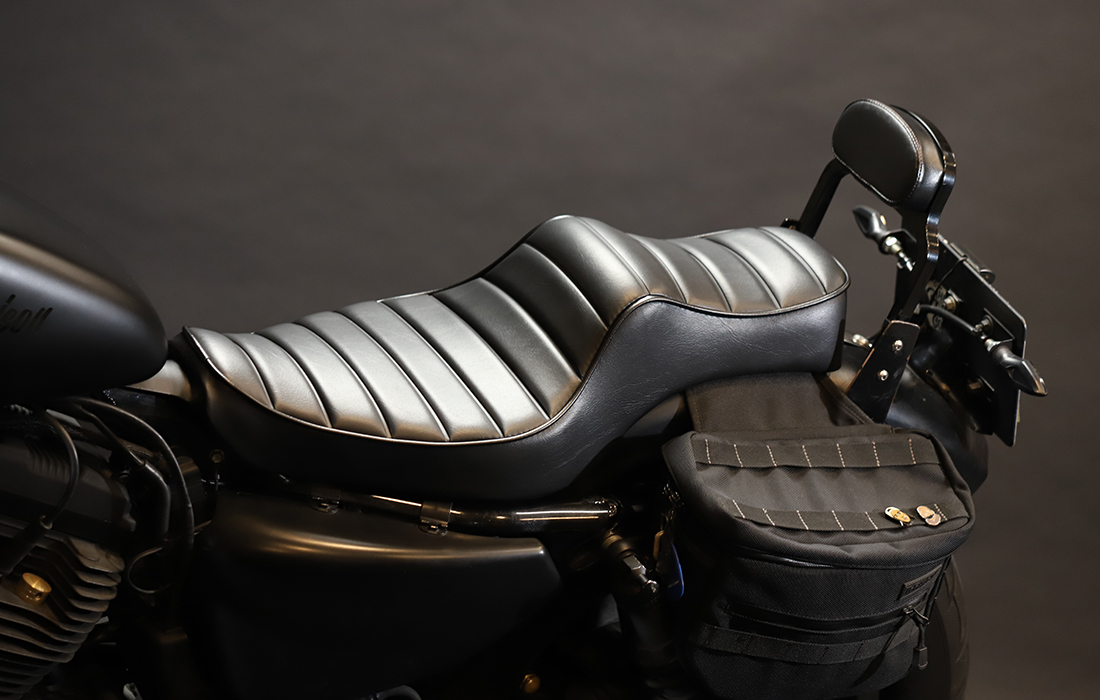3Dスキャン、3DCADを使用し 3Dスキャン、3DCADでシートベースをフレーム側にギリギリまで追い込んだスポーツスター対応シート。 横からのフォルムが特徴的なコブ付き、キャメルシート 横からのフォルムが特徴的なコブ付きのシート。加速時などにコブ部分で体を安定させ腰のズレなどを防止し、安定したライディングポジションを生み出します。 全体的にナローでスタイリッシュな外観。 CAUTION ※スポーツスター(10’〜21’)XR1200不可 Price - GLEAMING WORKS "CAMEL SEAT for XL"